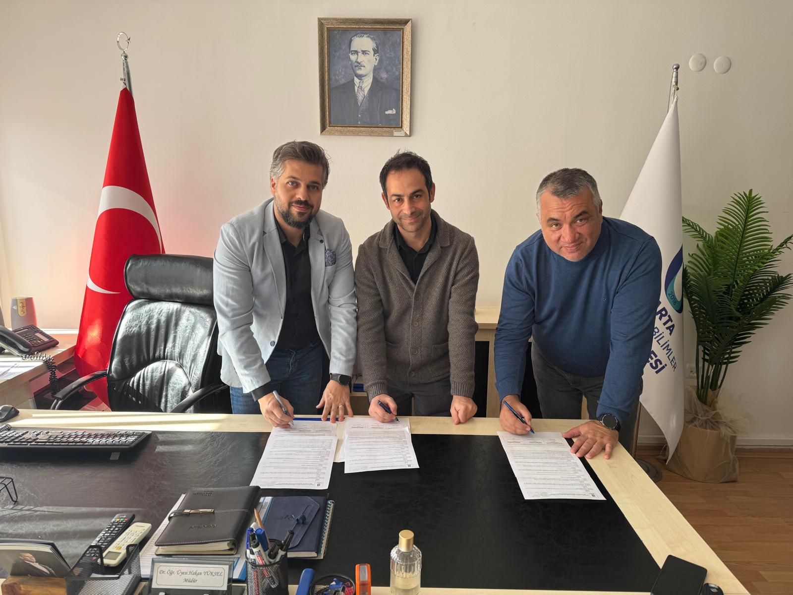 A cooperation protocol has been signed between Dr. Hakan YÜKSEL, Director of the Technical Sciences Vocational School at Isparta University of Applied Sciences, Lecturer Semih DOĞRUKOL, Director of the Isparta Organized Industrial Vocational School, and Mevlüt YAMAN, Director of LİYA Electric and Motor Vehicles Industry and Trade Limited Company, to provide students with vocational training at the company.