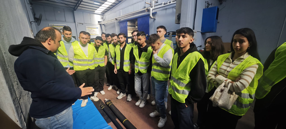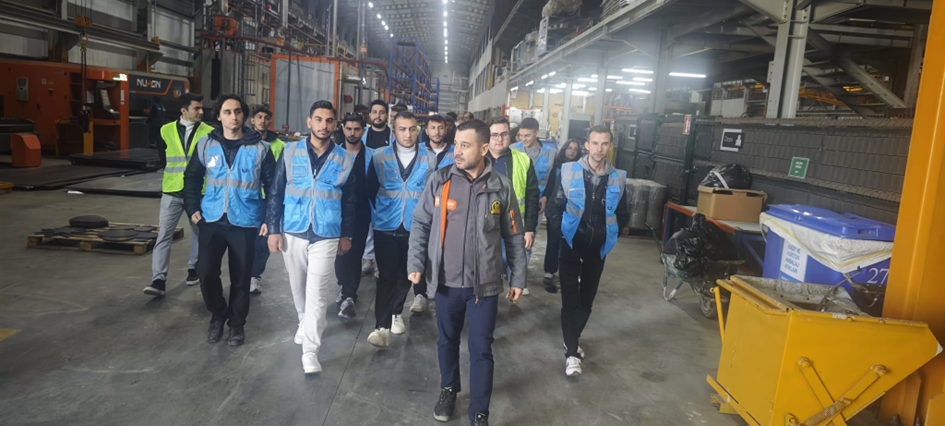 The students in the Mechanical Engineering Program began their trip with Askon Iron and Steel, a company with over 90 years of industrial and commercial experience in the iron and steel industry, serving our country and the world. During the trip, the students were presented with a presentation by the company's human resources representatives, outlining the company's introduction and expectations for graduate students. Following this, they took a site tour accompanied by the factory production manager. The company is equipped with state-of-the-art equipment for both machining and welding, allowing the students to observe these devices up close.