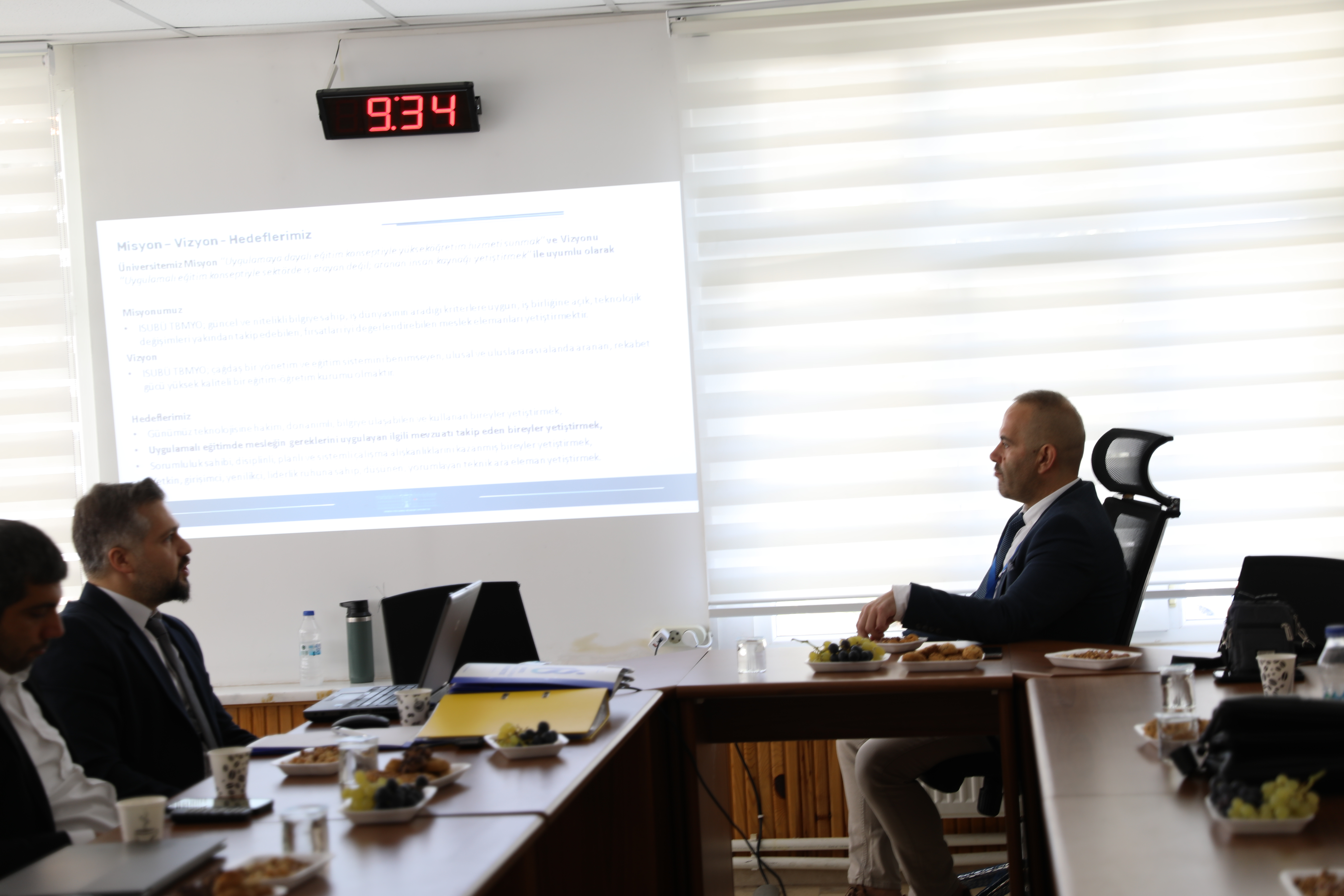 As part of the evaluation process, MEDEK delegation visited our school and was briefed on accreditation efforts by Dr. Hakan YÜKSEL, Associate Professor and Director of the College. Subsequently, the MEDEK Evaluation Committee toured our school's laboratories and classrooms, gathering information from the relevant authorities. The work carried out was evaluated in meetings attended by the department heads and teaching staff of the Electronics Technology, Cosmetics Technology, and Machinery programs, which are undergoing accreditation. Deficiencies were noted and new targets were set. The field visits concluded on the last day of the program with the Evaluation Teams issuing their Exit Statements to the Vocational School Management, Department Heads, and Program Faculty Members. The accreditation decision to be made by MEDEK following its final evaluation will determine the standard of our school's professional competence and educational quality.